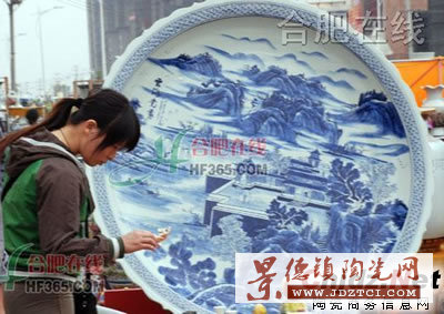 昨天,在合肥市舉辦的一場(chǎng)瓷器展上,一參展商正在一塊標(biāo)價(jià)168萬(wàn)元的看盤(pán)前若有所思。據(jù)了解,這塊直徑1.5米的看盤(pán),是目前江西景德鎮(zhèn)能夠制作出的最大看盤(pán)類(lèi)瓷器,其做工精細(xì),體形較大。在燒制的過(guò)程中,技術(shù)要求高,常常百余個(gè)模本才能制成一塊看盤(pán),因此其價(jià)格相對(duì)較高。但超過(guò)百萬(wàn)元的叫價(jià),還是讓現(xiàn)場(chǎng)許多市民難以接受,而一位長(zhǎng)期從事瓷器收藏的市民,更是直言其價(jià)格水分太大,按照現(xiàn)在市場(chǎng)情況,這種看盤(pán)至多不過(guò)1萬(wàn)多元。