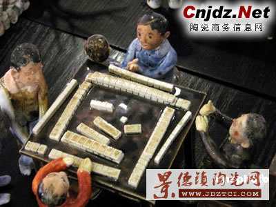 陶瓷燒制的酒席宴會(huì),維妙維肖的麻將“四人行”