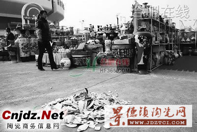 一陣陣 “丁零當啷”的破碎聲,一件件精美的景德鎮(zhèn)瓷器被摔得粉碎。12月1日上午,在淮北市體育館內(nèi)的景德鎮(zhèn)瓷器展銷會現(xiàn)場,由于部分展銷商不滿冷清場面,紛紛將大量滯銷瓷器摔成了碎片,而他們這種舉動也引起眾多市民的不滿。