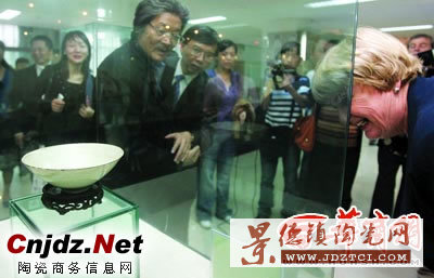哈里特特娜博士(右一)捐贈后再次看了一眼擺放在博物館里的瓷碗