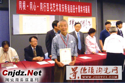 近日,河北省邯鄲市峰峰礦區(qū)陶瓷大師閆保山攜女兒閆英(陶瓷一級(jí)藝術(shù)家)應(yīng)邀參加了由中國(guó)文化名家協(xié)會(huì)、中國(guó)國(guó)際友好交流促進(jìn)會(huì)、中國(guó)海峽兩岸文化經(jīng)濟(jì)促進(jìn)會(huì)共同舉辦的“同根、同心、同行”百名藝術(shù)家慶香港回歸十周年書(shū)畫(huà)展,該展會(huì)在香港上環(huán)文藝中心召開(kāi),全國(guó)各。ㄊ校┌倜麜(shū)畫(huà)家及諸多書(shū)畫(huà)有業(yè)績(jī)者蒞臨大會(huì)。會(huì)上,閆保山和女兒閆英被授予“中港文化使者”榮譽(yù)稱(chēng)號(hào)。所展作品會(huì)上經(jīng)權(quán)威專(zhuān)家認(rèn)真篩選評(píng)審,閆大師書(shū)畫(huà)作品《磁州窯圖案》獲金獎(jiǎng),為省、市爭(zhēng)得了榮譽(yù)。