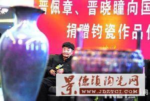 據(jù)晉佩章介紹,此次捐贈的“和諧寶鼎”、“太平尊”等6件柴燒鈞瓷,還原于宋瓷造型的“深厚端莊,典雅大方,紋飾簡練,線條流暢,棱角突出,起伏得當”,都是百里挑一的美器。