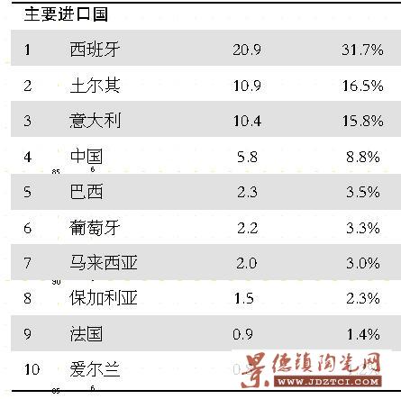 西班牙是英國陶瓷磚最大的進(jìn)口國,排第二、三的分別是土爾其和意大利,中國是英國第四大陶瓷進(jìn)口國,2006年中國對英國出口陶瓷磚5.8百萬平方米,占英國進(jìn)口量的8.8%。