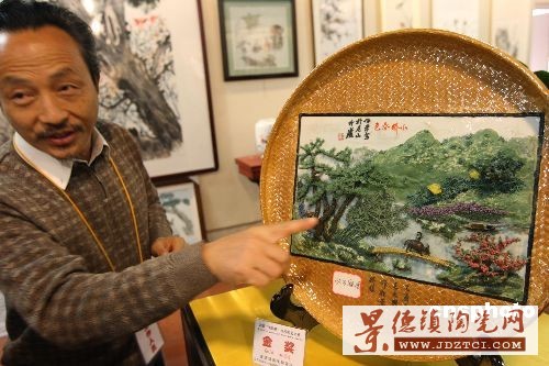 瓷板繪畫藝術(shù)作品是中國陶瓷藝術(shù)不斷創(chuàng)新的代表。本展中,以寫實為特點的景德鎮(zhèn)瓷板繪畫代表作“潮汛”、“春蠶之吃”等精品首度展出,令觀者贊嘆不已。這些作品在傳統(tǒng)陶瓷釉面色彩和立體制作上均有大膽探索和突破,并取得成功,成為景德鎮(zhèn)在繼承與創(chuàng)新過程中真實寫照。