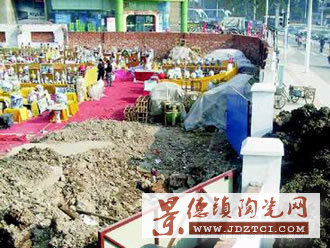 昨天上午10點多,記者聞訊趕到原鐘樓區(qū)政府地段時,只見通道口已被一人多高的泥土遮擋,十來名自稱來自景德鎮(zhèn)的客商在不住發(fā)牢騷,不時有客商攀上泥堆往返于展位和街區(qū)。