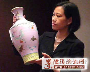 該蝴蝶瓶為粉紅釉底,彩繪廿四只姿態(tài)各異的蝴蝶,據(jù)稱(chēng)該瓶是八國(guó)聯(lián)軍時(shí),從圓明園流出,在傳世乾隆御瓷中,該類(lèi)花瓶未見(jiàn)先例,所以推估是獨(dú)一無(wú)二的“孤品”。