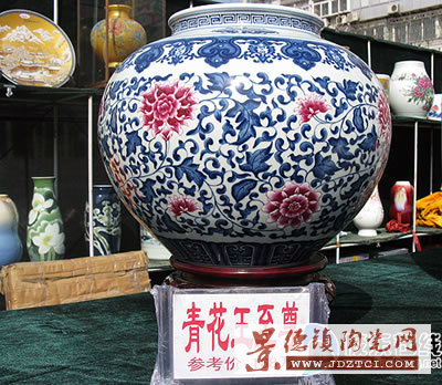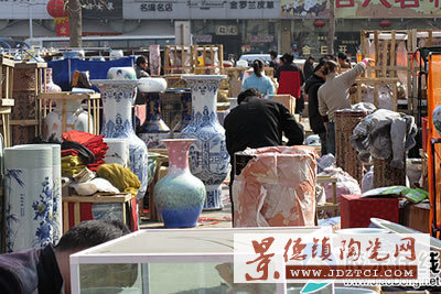 記者一早來到博物館廣場,這里已經(jīng)一字排開了數(shù)十個陶瓷攤點,展賣瓷器種類繁多!案毁F平安”大花瓶高達2米、重約150斤,花費工人一個月時間才制作完成,“年年有余”、“百子歡慶圖”東瓜罐,據(jù)說全是手工繪制的圖案,“水點桃花”大盤、“漁家樂”瓷塑、瓷畫、瓷屏風等各種藝術(shù)觀賞瓷、日用瓷叫人眼花繚亂。顏色釉瓷、粉彩瓷、仿古瓷、青花瓷各領(lǐng)風騷。其中青花瓷器有盤、瓶、香爐、執(zhí)壺、罐、碗、杯等。青花瓷,胎體厚重,裝飾圖案繁復,紋飾層次多,成為景德鎮(zhèn)的傳統(tǒng)名瓷之冠。但是現(xiàn)場購買的人卻很少,大多數(shù)人只是來問問價格。