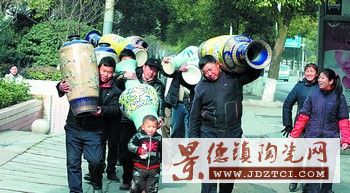 “只要你看中了,出多少錢都行。”昨日,在東風(fēng)路省人民體育場前人行道上,一群景德鎮(zhèn)瓷商人扛著大瓷器,邊走邊賣。這種搞怪的方法吸引了不少路人的眼光!颁N售不景氣,不得已把瓷器搬上街!逼渲幸幻倘苏f。