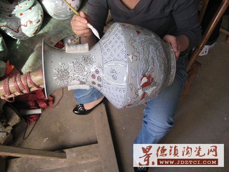 景德鎮(zhèn)手工藝人在繪制圖案