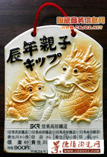 據(jù)《朝日新聞》網(wǎng)站報道,日本信樂高原鐵道公司于11月14日起開始發(fā)售來年的“信樂燒”生肖車票――“龍年親子車票”。這款陶瓷車票為一大一小兩條龍其樂融融的圖案。