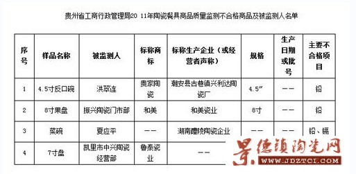 貴州省工商行政管理局近日發(fā)布2011年流通領(lǐng)域陶瓷餐具商品質(zhì)量監(jiān)測公告。根據(jù)公告,4批次商品抽查不合格。