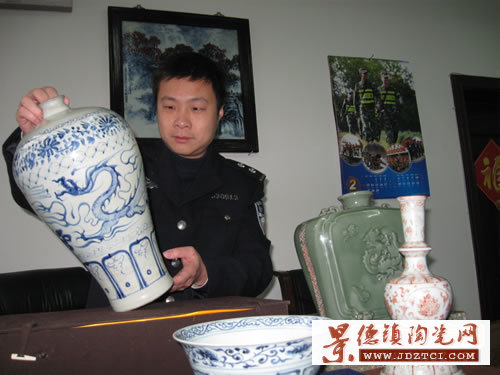 2月8日上午,該局副局長(zhǎng)張少鋒坐鎮(zhèn)珠山刑警中隊(duì),調(diào)集多路人馬,一舉抓獲該案4名犯罪嫌疑人,當(dāng)場(chǎng)追回2件失竊古瓷。2月12日,隨著偵查員遠(yuǎn)赴江蘇無(wú)錫和宜興順利追回另外兩件贓物。歷時(shí)近4個(gè)月,這起案值數(shù)百萬(wàn)元的古瓷被盜案終于成功告破。