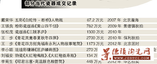 大概從2000年開始,正泰瓷社就著力于景德鎮(zhèn)陶瓷藝術(shù)大師作品的推廣,當時并沒有太多人關(guān)注。至少在5年前,當代名家名作價格還很低。幾萬塊錢就能收到中國工藝美術(shù)大師和中國陶瓷藝術(shù)大師的巔峰之作。中國工藝美術(shù)大師戴榮華的一把茶壺,2007年時候的價格大概只有5萬,現(xiàn)在是20萬以上。2008年中國嘉德秋拍,戴榮華的一件粉彩仕女瓶18萬成交,2010年秋拍重新出現(xiàn),價格已經(jīng)是60萬成交。而戴榮華同等作品今年一級市場價格更是超百萬。中國陶瓷藝術(shù)大師陸如在2006年以6.5萬元的價格就可以買到的作品,現(xiàn)在的價格也超過50萬元。