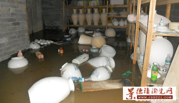 8月10日,臺風(fēng)“?苯o景德鎮(zhèn)帶來了一場強(qiáng)降雨,降雨引發(fā)的洪水更是造成了不小的損失。在這場洪水中,不少陶瓷商家都受到了影響。陶藝一條街、曙光路古玩市場因為地勢較低,幾乎全部被淹,其間店鋪無一幸免。一些陶瓷手工小作坊,由于洪水的浸泡,不僅瓷坯化為了泥漿,就連窯爐等機(jī)器設(shè)備都受到了不同程度地?fù)p壞。