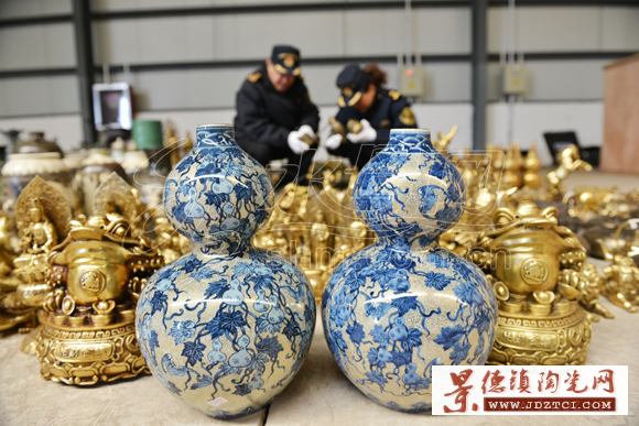 當(dāng)日,海關(guān)經(jīng)過風(fēng)險分析,決定對一票申報為瓷磚、PU人造革的出口商品進(jìn)行布控查驗,結(jié)果在集裝箱內(nèi)查獲標(biāo)有“宣德、乾隆年制”的瓷器等各類疑似文物共計2000余件。經(jīng)煙臺市博物館有關(guān)專家鑒定,上述文物均為現(xiàn)代仿品。仿制文物雖不屬于禁止或限制出境物品,但因其未向海關(guān)申報,所以將2000余件仿制文物移交緝私部門作進(jìn)一步處理。