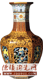 中國陶瓷工藝一直處于世界領(lǐng)先地位,至清朝乾隆時期達到歷史頂峰。此時的陶瓷制人窮極工巧、品種翻新,許多品種前無古人后無來者。這件外粉彩內(nèi)青花鏤空六方套瓶即為這一時期的登峰造極之作。