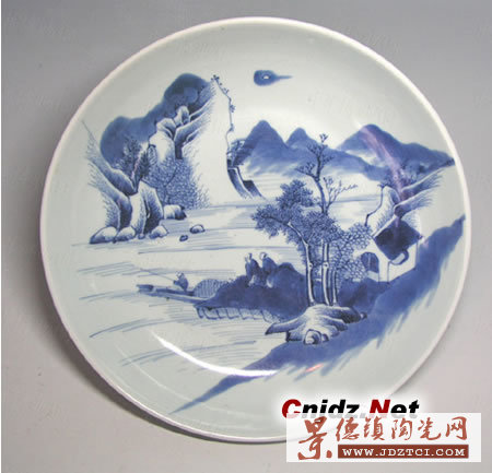名 稱: 清雍正 景德鎮(zhèn)窯青花山水人物紋盤 年 代:清代