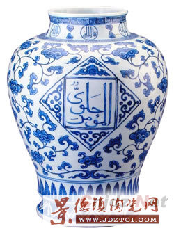 此罐有一種特殊的裝飾,即開(kāi)光中的阿拉伯文。瓷器的燒造有時(shí)跟皇帝的喜好有關(guān)系,正德皇帝崇信伊斯蘭教,因而這個(gè)時(shí)期的瓷器上很多裝飾有阿拉伯文。