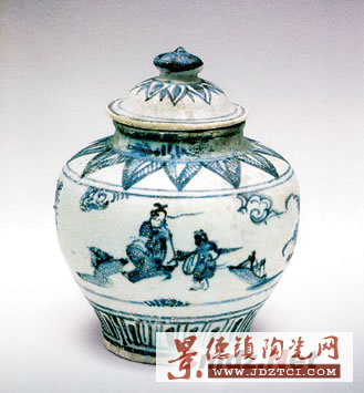 青花人物罐