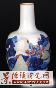 1995年夏,我去寧、滬、杭尋寶時(shí),在南京朝天宮古玩市場(chǎng)買到了一件康熙“釉里三色”山水景物圖長(zhǎng)頸瓶。