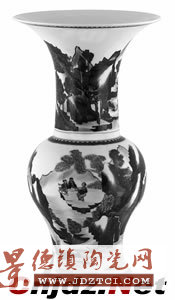 此次由中國(guó)文物學(xué)會(huì)全程監(jiān)督制作的高仿品青花山水人物圖鳳尾尊,經(jīng)眾多專(zhuān)家研究多年,終于再現(xiàn)了歷史的原貌。此尊貴在署干支紀(jì)年款,“乙未”為康熙五十四年(公元1715年)。其釉面及青花色澤為康熙晚期青花瓷的典型。