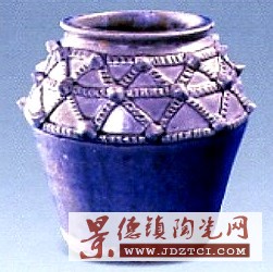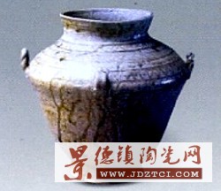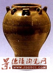 圓口、溜肩、鼓腹、圈足,肩部堆塑交錯(cuò)排列的繩索紋樣。通施青釉,釉面光潤(rùn),胎釉結(jié)合緊密,瓷化程度已接近于現(xiàn)代瓷器水亞。它是東漢晚期瓷器由原始瓷向近代瓷器過渡的一個(gè)標(biāo)志.