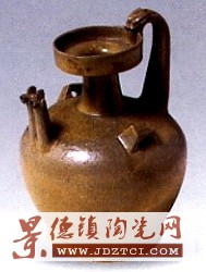執(zhí)壺在唐代最為常見,普遍為撇口,圓柱形頸,略高,肩部有六方或八方小短流,相對(duì)處有小泥條或扁平執(zhí)柄。流、柄之問有二,四不等的泥條系,假圈足,造型矮胖。