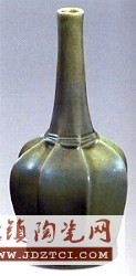瓶為圓口,長(zhǎng)頸,圓腹,頸底部飾三周臺(tái)階形八方弦紋。肩腹部豎向凸飾八條棱線,圈足。秘色瓷因其燒制技術(shù)、配方、工藝秘不傳人,其瓷器真品傳世也極少,更增添了一釉神秘之感。"秘色瓷"一名最早見于唐代陸龜蒙的《秘色越器》,詩中“九秋風(fēng)露越窯開,奪得千峰翠色來”,清楚地點(diǎn)出了秘色瓷為越窯所產(chǎn)。