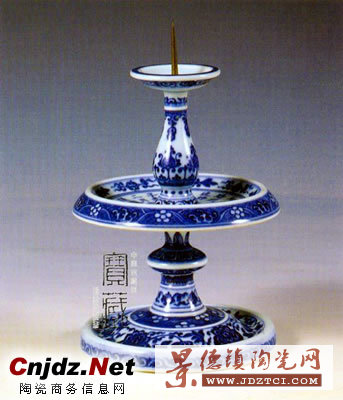 清乾隆 青花御題詩紋燭臺