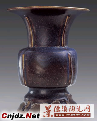 此紫紅釉出戟尊為日本伊豆高原美術(shù)館的珍藏品,高28厘米,口徑23厘米,底徑18厘米。尊的造型仿古代青銅器樣式,喇叭形口,扁鼓形腹,圈足外撇。頸﹑腹﹑足四面均貼條形方棱,俗稱“出戟”。日本全國博物館界最權(quán)威的機(jī)構(gòu)“日本博物館協(xié)會”在其主辦的《博物館研究》第32卷第11號(平成9年11月25日發(fā)行,既1997年)以此尊作為封面,并在目錄頁有這樣的說明:“封面:【紫紅釉尊 鈞窯】宋末元初時代 13世紀(jì) 高28cm 口徑23cm 底徑18cm 伊豆高原美術(shù)館”。在第40頁有專文介紹伊豆高原美術(shù)館,列舉了該館的經(jīng)典藏品,代表作品有“狩野探幽”﹑“花鳥人物屏風(fēng)”﹑“紅釉羊頭把手大瓶”﹑“鈞窯紫紅釉尊”等。1997年6月,在日本東京舉辦的“中國鈞窯珍品展”引起強(qiáng)烈轟動,日本伊豆高原美術(shù)館長對中如云先生這樣說:“中華民族的歷史悠久﹑文化燦爛,陶瓷藝術(shù)世界聞名,鈞瓷不僅屬于中國人民,也應(yīng)該為世界人民所擁有! 傳世宋代鈞窯瓷器以各式花盆和花盆托最為多見,出戟尊較為少見,最為珍貴。上海博物館收藏一件宋代鈞窯月白釉出戟尊,臺北故宮博物院收藏有宋代鈞窯丁香紫釉出戟尊。