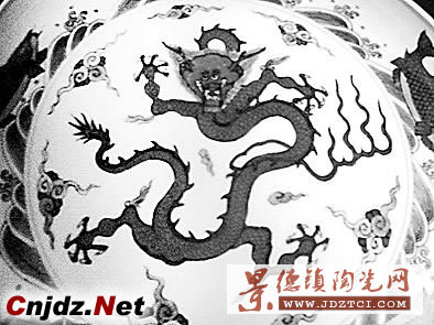 具體來講,宋代以前陶瓷上的龍紋尚無規(guī)范,多作獸狀,軀體粗壯、獸形腿、三趾鷹爪,龍首有角無須。宋代龍紋形體已有定式,直至元、明、清代,均身作蛇形,身至尾漸細(xì),四肢有羽毛,趾有三、四、五不等,龍首有角、發(fā)、須。宋元以前以三、四趾龍紋居多,明清時期官窯瓷器上所繪皆五趾龍紋。龍紋的體態(tài)宋、元、明、清也有不同的文化:宋代龍紋頭小腳大身軀壯,發(fā)后沖,有須,三趾,有威武感。元代龍紋頭小,頸細(xì),肢瘦而有力,龍首無發(fā)或疏發(fā),須發(fā)前后沖,舌長,身繪魚鱗片或斜格紋。明代永樂以后,龍體變粗,張嘴伸舌,上顎高突,五趾為鷹爪,俗稱風(fēng)車爪。成化至正德時期,龍紋多閉嘴,方首,毛發(fā)上豎,龍睛圓睜平視。嘉靖至萬歷時期,龍身又趨細(xì)長,毛發(fā)增多,龍首上顎伸出,面端鼻尖繪成如意狀,似豬嘴,俗稱豬嘴龍。崇禎時期始見正面龍,俗稱老頭龍。清初龍紋尚存明代遺風(fēng)。至康熙時期,龍嘴變短,眼睛變小,身軀變肥,頭發(fā)像獅子,龍須細(xì)長而卷曲,神態(tài)兇猛。雍正時期仿明代龍紋,但頭部特征同清代。乾隆時期龍身粗,毛發(fā)多,嘴部特征仿明代,整體有蒼老感。嘉慶、道光以后,龍的身軀更為臃腫,龍紋的繪制呆滯,線條簡化,龍的下噪聲低垂,毫無威嚴(yán)之感。