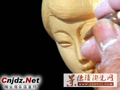 稍微晾曬之后,將捏塑好的肢體部件,通過泥漿來粘合拼接,塑造出瓷塑仕女的大概輪廓。然后,要憑借著手中的雕塑刀,對瓷塑進行細部的刻畫,雕塑中:刮、削、貼、挑、壓、抹等技法,主要是靠塑刀來完成。