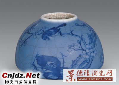 清乾隆 藍釉青花喜上梅梢馬蹄水盂 直徑11cm