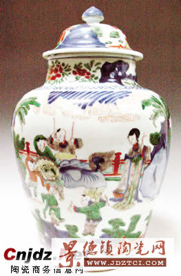 清康熙 五彩四妃十六子圖蓋罐