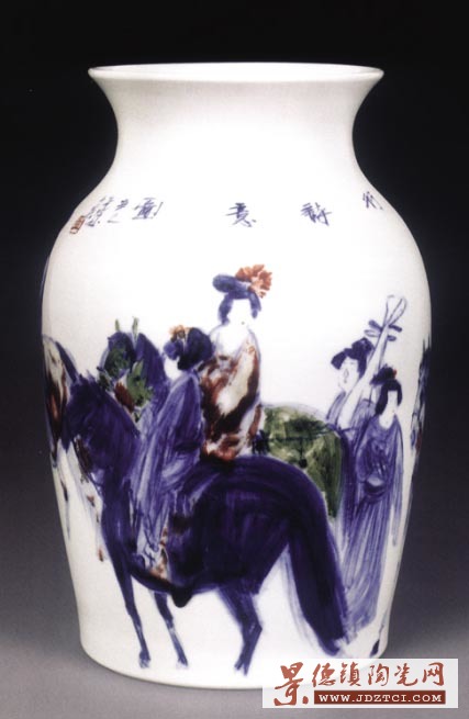 彭先誠 麗人行詩意圖 釉下彩瓷瓶 成交價(jià):12.73萬元 中國嘉德2008秋拍品