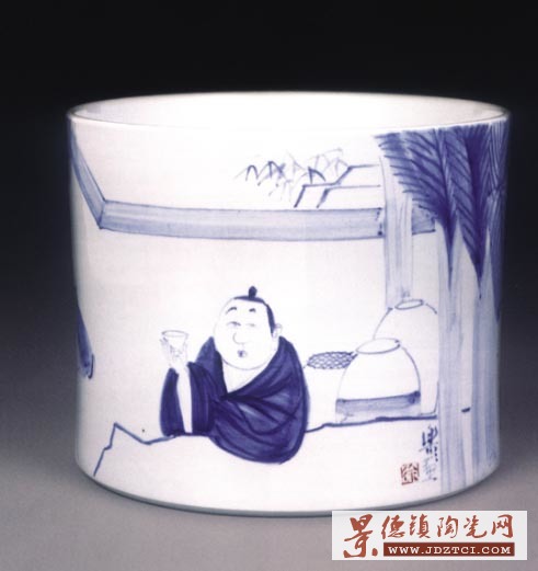 范曾 老子演義青花畫缸 成交價(jià):134.4萬元 北京榮寶2008秋拍品
