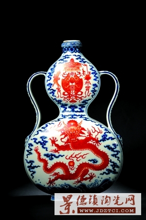 青花加紅彩裝飾是明清瓷器品種之一,始于明代宣德年間,其制作工藝是在燒制好的青花器上,以氧化鐵為著色劑的紅彩輔以描繪紋樣,低溫烘烤而成,在青花的襯托下,礬紅彩愈顯艷麗奪目,極富裝飾效果。