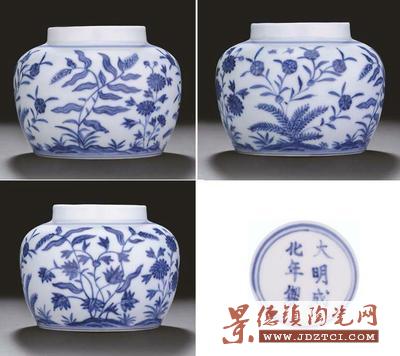 明朝第九帝朱見深,于1465年登基,改年號成化。其人寬仁雅逸,擅長丹青,于瓷器更是青花與斗彩兼愛,尤愛玲瓏小品!睹魇贰な池浿尽酚涊d:“成化時遣中官之浮梁景德鎮(zhèn),燒造御用瓷器最多且久,費不貲!逼渲拼芍婵梢娨话摺S捎谔熳佑兴脨,因此成化青花造作尤為精細(xì),加之胎薄體輕、釉質(zhì)瑩潤、青花淡雅、畫面清澹,運筆瀟灑。故有古人贊曰:“唯恐風(fēng)吹去,還怕日炙消”。翰海秋拍古董專場扛鼎之作——“明成化青花九秋圖罐”,無論器物外形之雋永,或是青花點染之意境,均經(jīng)典地代表著成化官窯瓷精巧秀雅之美。