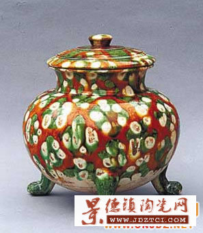 中國古代器物中,使用最為廣泛而又差別頗大、造型各異的就屬香爐了。在一般人的觀念中,香爐似乎只是焚香的器具,于是說到香爐的樣式,人們腦海里總會出現(xiàn)宋代哥窯或龍泉窯的雙耳爐,再就是明代的銅質(zhì)宣德爐及其仿制品了。事實(shí)上,香爐的種類和用途遠(yuǎn)不止于此,唐三彩三足爐便是其中較為獨(dú)特的一種。它造型別致,精美奇巧,極具魅力。