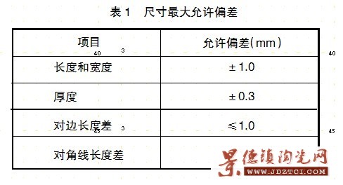 在離陶瓷板角點(diǎn)5mm處,用精度為0.5 mm的直尺或卷尺進(jìn)行測量,計(jì)算對邊的平均值與工作尺寸的偏差。