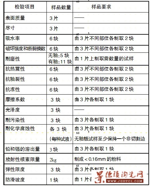 出廠檢驗(yàn)項(xiàng)目包括表面質(zhì)量、尺寸、吸水率、斷裂模數(shù)與破壞強(qiáng)度。
