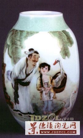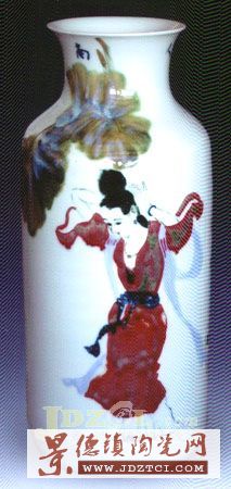 “李菊生陶瓷藝術(shù)館”就在“中華陶藝村”他家的別墅樓中,占據(jù)了兩層樓面、六個(gè)展室。此次共有51件藝術(shù)陶瓷作品展出,大部分是他首創(chuàng)的高溫顏色釉裝飾人物藝術(shù)瓷,也有青花、釉里紅綜合裝飾藝術(shù)瓷,器型是瓷瓶、瓷盤、瓷板,還有部分粉彩藝術(shù)瓷瓶等。
