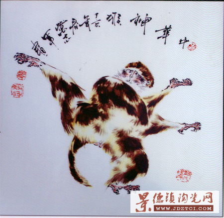 他的“猴王”譽稱,并非浪得虛名。采訪時,見到了他近期為迎接2008年北京奧運會而精心創(chuàng)作的《中華舞猴》系列作品圖。這些猴以不同的中國武術(shù)動作展現(xiàn)在人面前;完全突破了傳統(tǒng)的靜態(tài)和本能狀態(tài),猴的不同武術(shù)套路姿態(tài)既優(yōu)美又氣勢雄壯,動作剛勁有力又氣韻生動。這些張揚靈動的猴圖,不僅寄托了他對動物的喜愛,對北京奧運的盼望、對中華武功的期待,還傾注了對中國傳統(tǒng)文化中的“美猴王”英勇頑強精神的發(fā)掘弘揚,并且又以“猴”(侯)的諧音契合了人們的傳統(tǒng)喜慶心理,這也是他的陶藝作品在市場廣受歡迎的緣故。