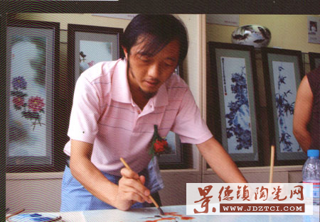 對這次獲獎,他并不特別在意,對自己的陶瓷技藝十分自信。何況,這次獲獎作品,還并不是他平時最喜愛、最擅長、也在陶瓷界最有影響的作品類型。這位年輕的國家級高級工藝美術(shù)師、江西省首屆陶瓷美術(shù)家,從事陶瓷美術(shù)30年,早在1982年的第一屆陶瓷“百花獎”中,就以釉下五彩人物花瓶和皮燈分獲二、三等獎;作品曾先后榮獲國內(nèi)外陶瓷大獎數(shù)十項。其中瓷板畫《壽猴》和瓷板畫《游春圖》分別在1991年和1993年的“日本恩巴——景德鎮(zhèn)陶瓷藝術(shù)精品展中獲“入賞”和優(yōu)秀作品獎,作品被日本的中國近代美術(shù)館珍藏,并因此而被日方邀赴日本,表演獻藝。2005年參加“首屆中國高級工藝美術(shù)師提名展”榮獲“中國工藝美術(shù)學(xué)術(shù)獎”,歷年來還為釣魚臺國賓館和國家駐外機構(gòu)以及國家領(lǐng)導(dǎo)人出訪禮品瓷創(chuàng)作設(shè)計了多件、套優(yōu)秀的日用陶瓷,1992年設(shè)計的《十四碩果圖》煙茶具,被選為黨的十四大主席團專用瓷,1993年圖盤《猴趣》被國家領(lǐng)導(dǎo)人出訪時,作為禮品瓷送給外國元首。此后,萬志軍就獲得業(yè)界的“猴王”譽稱。