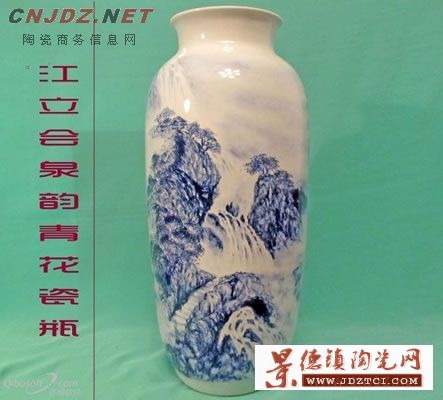 三十多年的陶瓷藝術(shù)創(chuàng)作生涯,不管是在什么崗位,他從未放棄自己對陶瓷藝術(shù)的探索與追求,陶瓷新彩、粉彩、青花……各種傳統(tǒng)陶瓷裝飾藝術(shù)他都如饑似渴地學(xué),令這些技藝在自己的手下妙筆生花,在眾多陶瓷裝飾手法中,他對寫意青花山水情有獨鐘愛得如癡如醉。所謂青花瓷,是運用天然、鈷料在白泥上進行繪畫裝飾,再罩以透明釉,然后在1300℃高溫下燒成,使色料充分滲透于坯釉之中,呈現(xiàn)青翠欲滴的藍色花紋。因而,陶瓷藝人都以能展現(xiàn)青花技藝為幸事,為追求它的精典而如癡如醉,江立會認(rèn)為青花不僅有著圖案瑰麗、紋飾繁多的美,有著著色單純、落筆素凈的靜,更因為她有著從中國水墨勾染皴擦的特殊暈染的雅,用這些元素來描會出一個個山川奇秀、荷塘月色、花草相親、葉石相依的詩意世界美不勝收。正是如此,他通過多年來對青花瓷的耕耘,使他不斷吸取其藝術(shù)精髓,并在生活中探索著美的意境,生活的感悟讓他在陶瓷作品中隱現(xiàn)出對生活的激情及對人生的感知,使他的藝術(shù)更好地表現(xiàn)出高雅的情趣和創(chuàng)新的理念。他深知藝術(shù)的道路是漫長的,決非一朝一夕就能出成績,因此,要耐得住寂寞,靜得下心來,天天做同一件事是枯燥的,三十多年的創(chuàng)作經(jīng)驗告訴他,搞藝術(shù)的人首先要喜歡藝術(shù),其次要勤奮,最主要的還是要有悟性,而悟性又離不開自身的閱歷、知識與修養(yǎng)。因此,無任是星期天、節(jié)假日,對他而言,沒有這個概念,一門心思搞繪畫創(chuàng)作,他的癡迷可用魯迅先生的一句話來描述“躲進小樓成一統(tǒng),管他冬夏與春秋”,他積極創(chuàng)辦自己的陶瓷藝術(shù)工作室,創(chuàng)作出一件件陶瓷藝術(shù)精品,將自己心中的美好理想變?yōu)楝F(xiàn)實,他一步步登上藝術(shù)創(chuàng)作的新高,青花釉里紅《雄鷹展翅》200件作品在全國工藝品、旅游紀(jì)念品交易會上獲得銀獎。粉彩瓷板畫《山鄉(xiāng)春來早》獲得“海絲杯”美術(shù)陶瓷作品展金獎。粉彩《獅》由北京美術(shù)館展出并收藏。