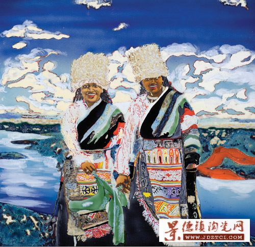 章朝暉開始探索用陶瓷繪畫語言、用顏色釉的斑斕色彩,再現(xiàn)那注滿靈動與激情的西藏風情畫面。高溫顏色釉.其與身俱來的尊貴感、釉料在高溫窯變后的璀璨光色、能夠萬世留存的特質(zhì),去表現(xiàn)青藏高原這塊神秘的土地的蒼涼、靜謐與神圣,給章朝暉原有的作品賦予了新的藝術(shù)表現(xiàn)力。這些作品成為章朝暉,“老屋”、“京劇臉譜”系列外的又一新的藝術(shù)表現(xiàn)體系。