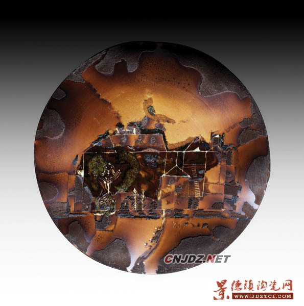 2012年,所有的耕耘,終于換來了收獲,在安徽省美術(shù)家協(xié)會和安徽省陶藝委舉辦的現(xiàn)代陶藝展上,朱墨的兩幅陶藝作品,高溫顏色釉瓷盤《黑鐵時代》,以幾乎天成的窯變效果,呈現(xiàn)出奇異的色彩和造型,來自中國陶藝委的評委白明、左正堯十分欣賞,評被為金獎作品。