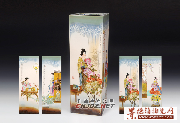 熊金榮帶著些許期盼再次參加了杭州藝博會(huì),《唐韻》就掛在他展位顯眼的位置,凡經(jīng)過(guò)此處的參觀者都會(huì)停下腳步,仔細(xì)端詳一番瓷畫中的幾位變形的美女,她們是那么的氣定神閑,是那么得讓人具有想象的空間。