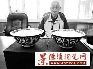 78歲的王魁升先生從盒子里拿出這對青花瓷碗時(shí),文物專家看了一眼就說:“好東西。”再仔細(xì)一看,果然是清代官窯的,可惜其中一只碗上有一道“沖”。這樣一對瓷碗,是王先生父親解放前買的,能流傳下來實(shí)為不易。