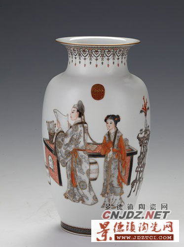 周先生獨創(chuàng)的墨彩描金的一整套工藝,是景德鎮(zhèn)藝術陶瓷巧奪天工、技藝精湛的又一里程碑,每一道工序上都有他實踐中摸索、創(chuàng)造出來的“絕活”,這讓夏忠勇一生受用不盡。他在線描上下的功夫,是普通陶瓷繪畫者望塵莫及的。他以線描為基礎,用線來造型。而且他在色彩上也十分講究,諳熟色彩的水性、油料性,始終保持著用色少“墨色濃淡、雅潔宜人”的藝術效果。在構圖上有時采用了繡像畫的。舍棄了不必要的背景,以白襯黑使主題更為突出,更能突出景德鎮(zhèn)瓷白如玉和造型的獨特完美。